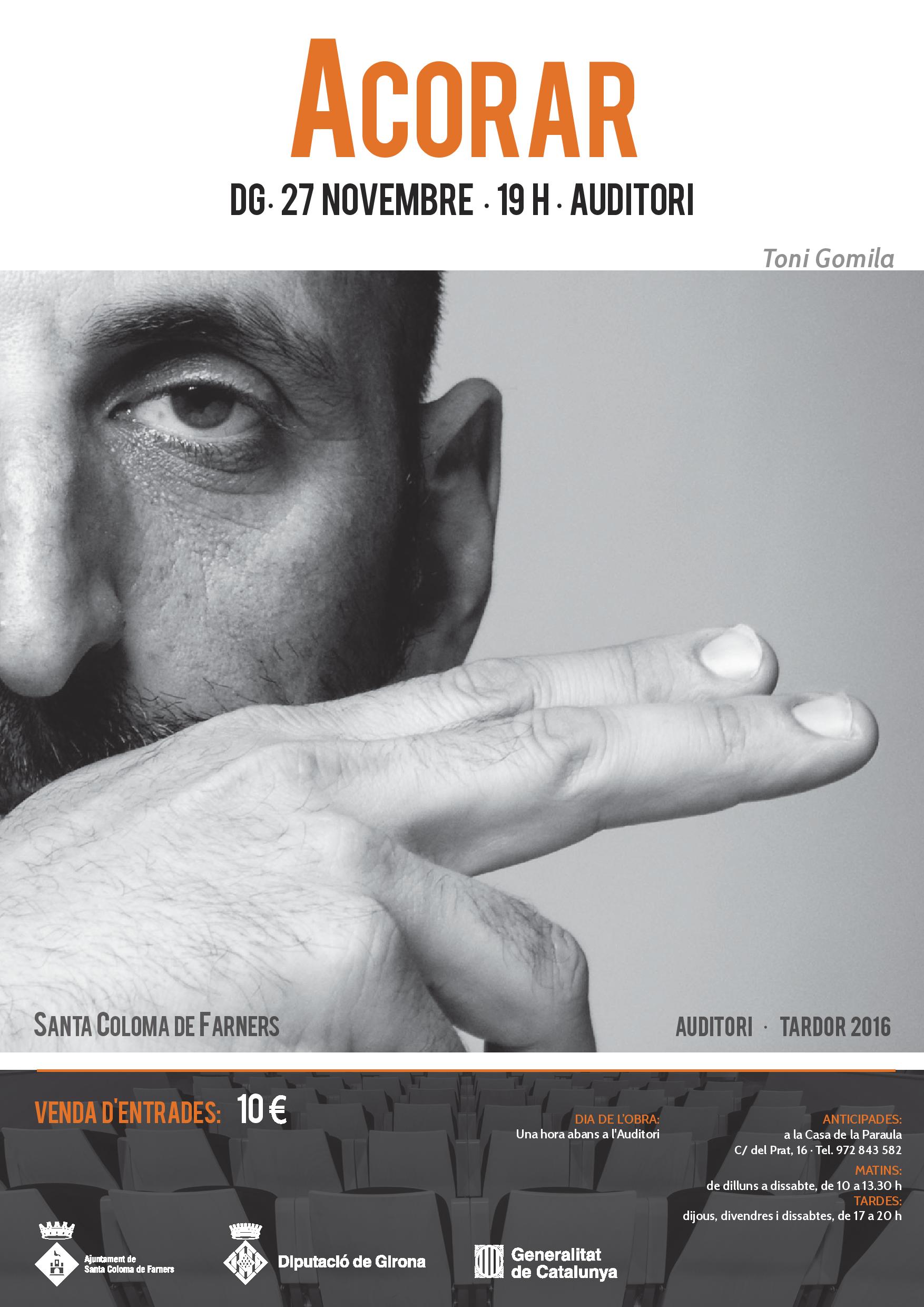 Venda d'entrades anticipades a la Casa de la Paraula al preu de 10 euros. El mateix dia una hora abans a l'Auditori.