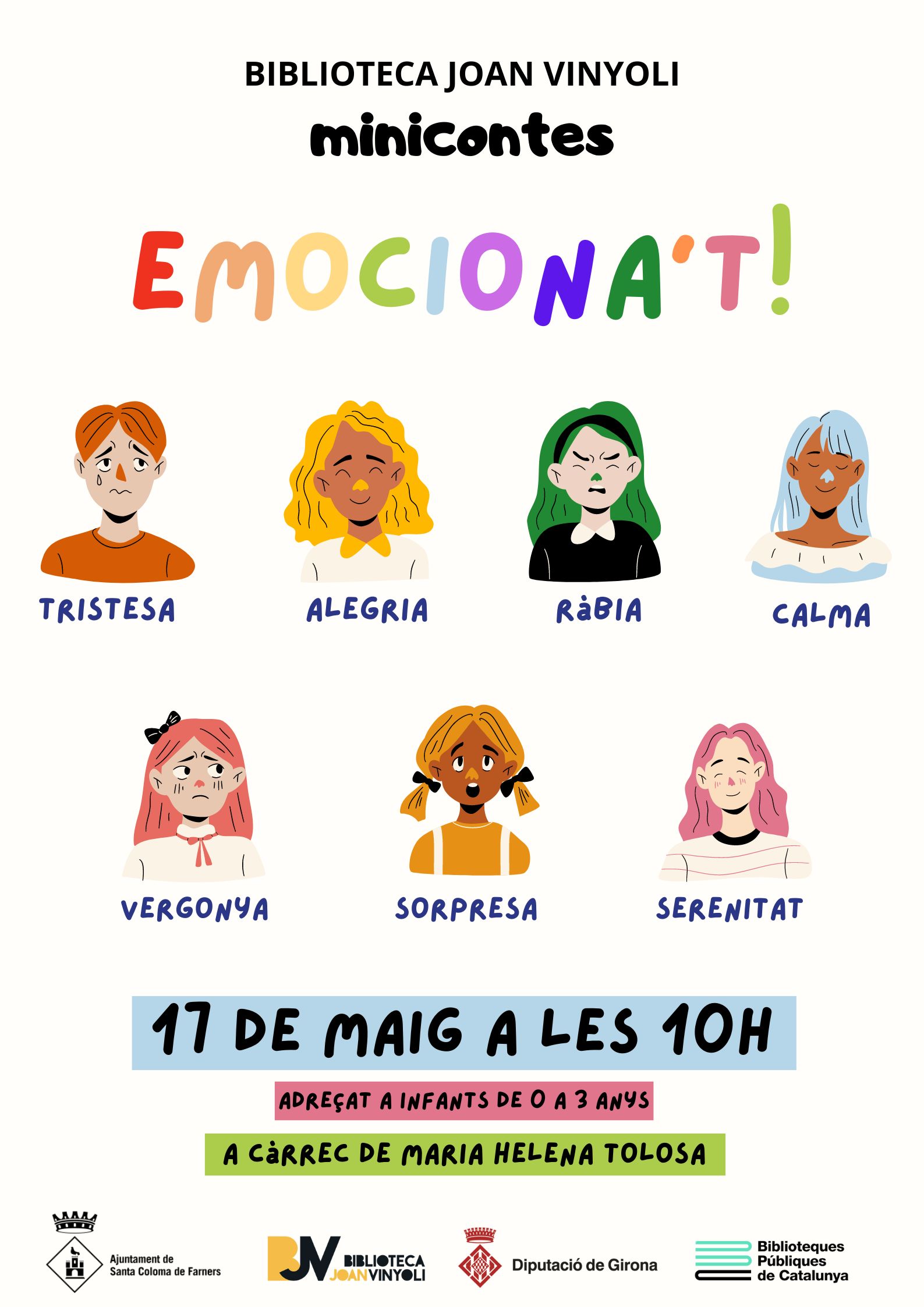 A Emociona't els contes estan relacionats amb les emocions, els reptes i les pors de tota mena que ens porta la vida. També ens podem centrar només en l'emoció de la por (por del que és desconegut, por de les ombres, por de quedar-se sense amics, por que no t'estimin, por de la mort, por de créixer, etc.). Donem als participants una «emocioneta» perquè puguin confeccionar-la a casa i els ensenyem alguna cançó que ens ajuda a gestionar les nostres emocions.