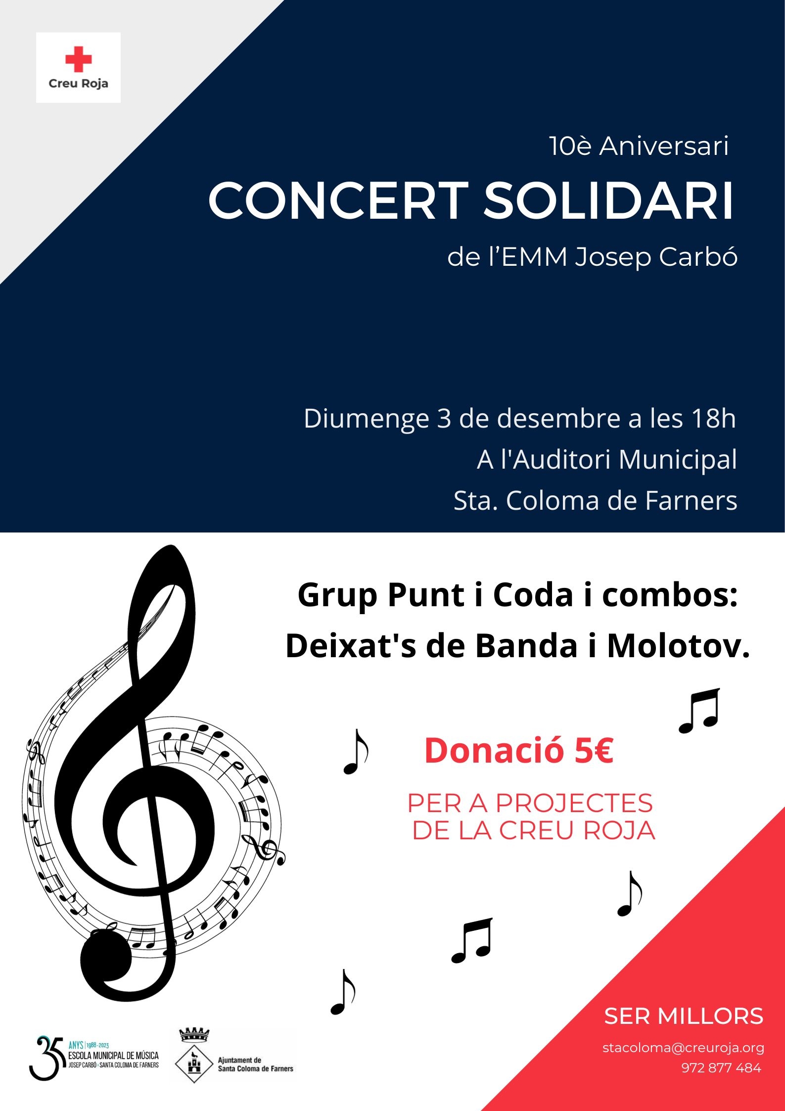 Ofert desinteressadament per l'Escola Municipal de Música: grup Punt i Coda, combos Deixat's de Banda i Molotov.