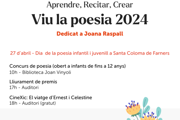 La pròxima projecció ‘El viatge d’Ernest i Célestine’ serà el dissabte, 27 d’abril a les 6 de la tarda, a l'Auditori, en el marc dels actes de la jornada "Viu la poesia 2024. Dedicat a Joana Raspall"